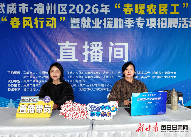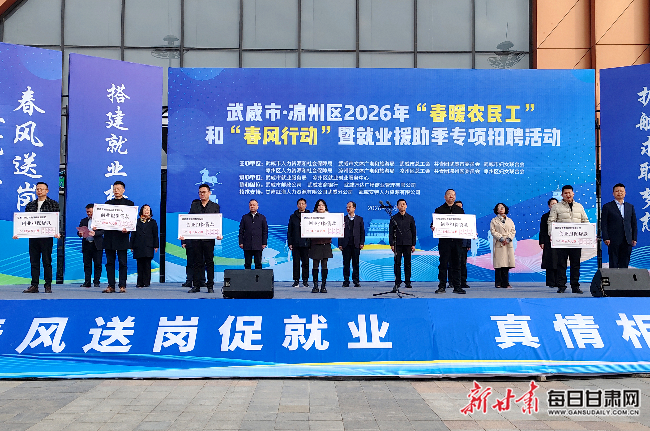 新甘肃客户端武威2月28日讯(新甘肃·甘肃日报记者 金奉乾)今天上午,武威市举行2026年“春暖农民工”和“春风行动”暨就业援助季专项招聘活动。为求职者和企业搭建精准对接平台,畅通就业渠道,帮助各类企业招工稳岗,助力城乡劳动力稳定就业增收。